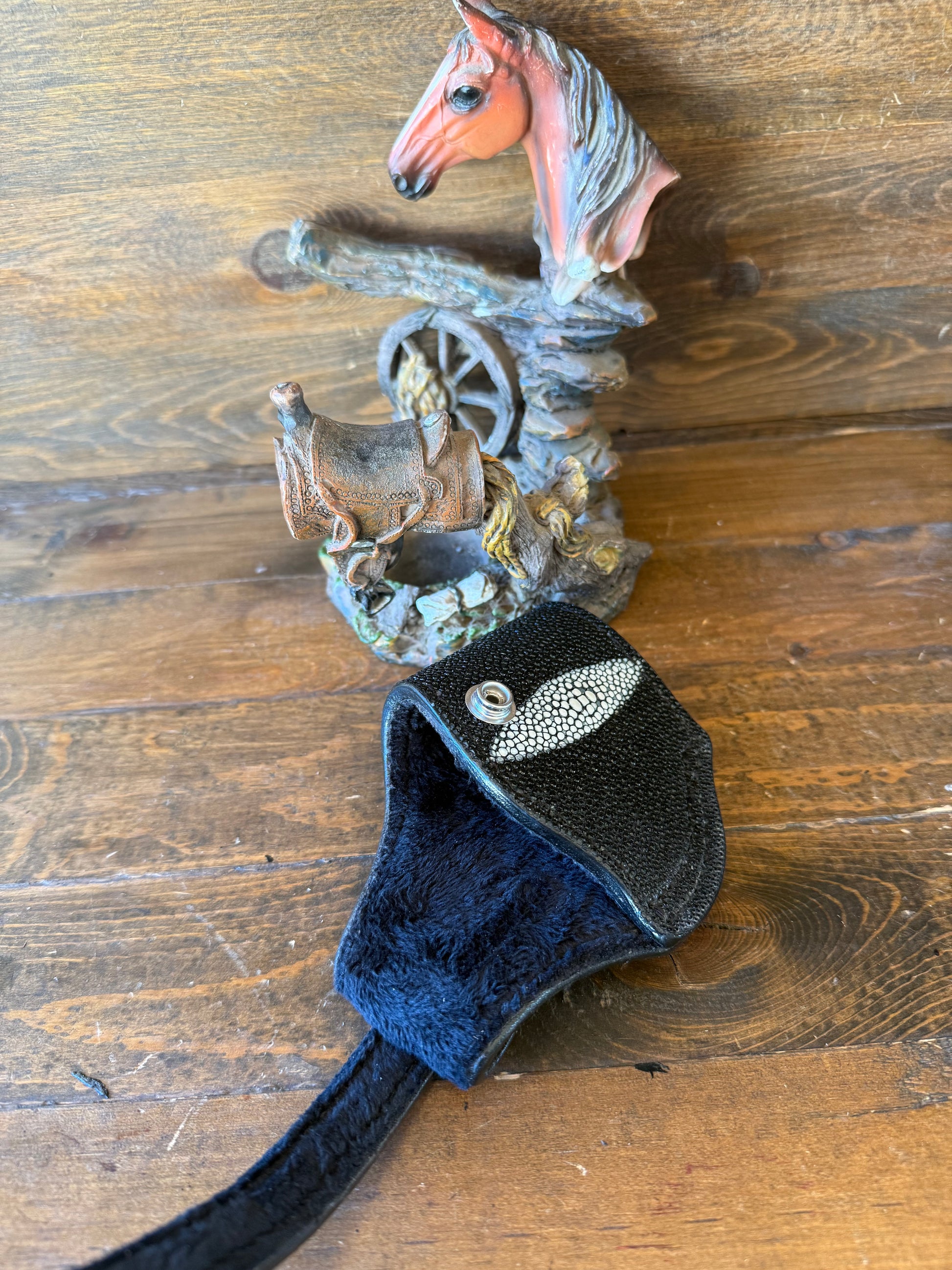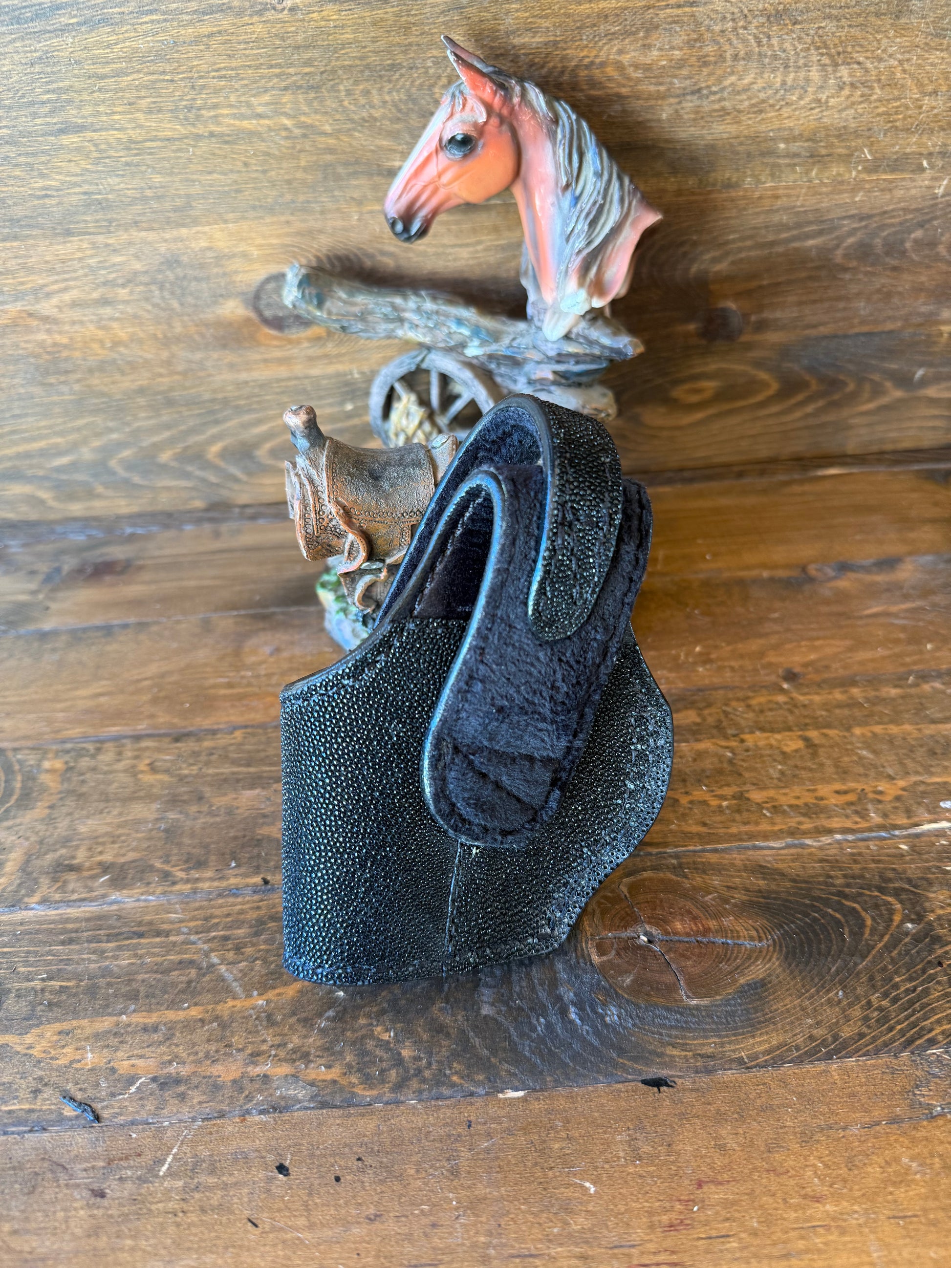 # H-202-4 Black Stingray skin w/diamond compact holster. Chrome color snap, Fits most of 1911 models. Soft velvet interior to prevent scratches. More colors available by order.