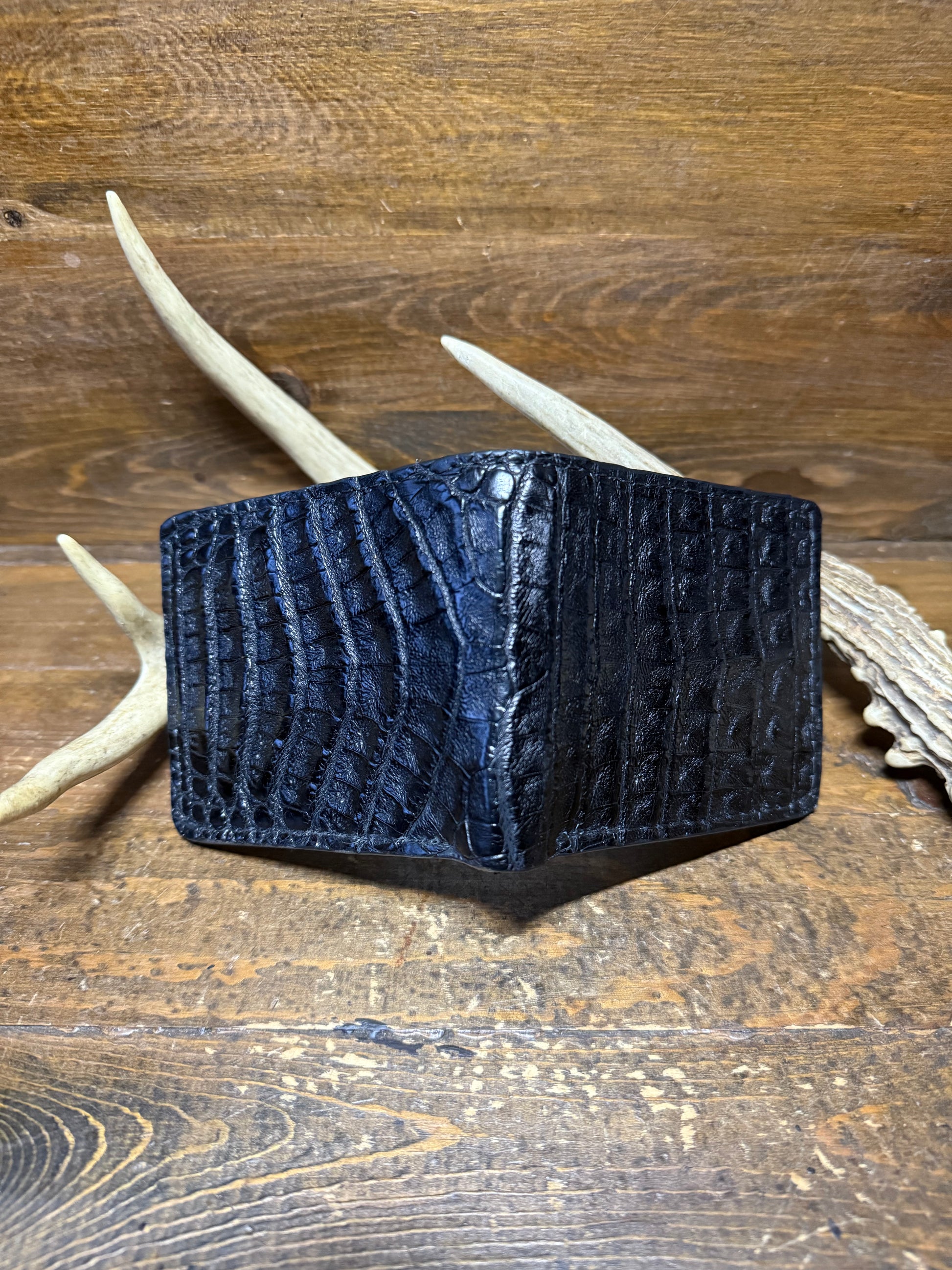 # W-143 Black crocodile/Caiman belly bifold handmade wallet, 8 Interior slots. Bifold, can be personalized