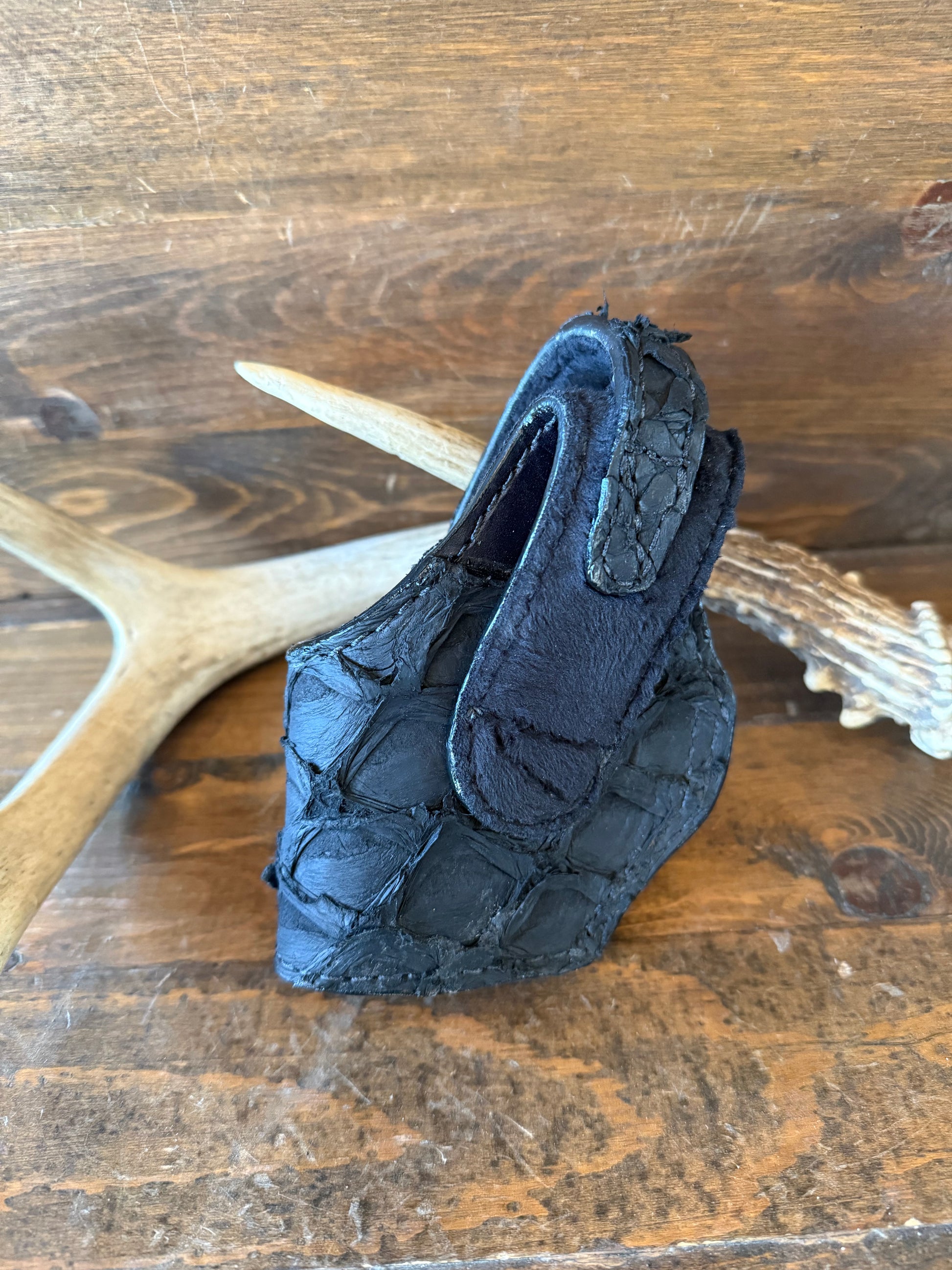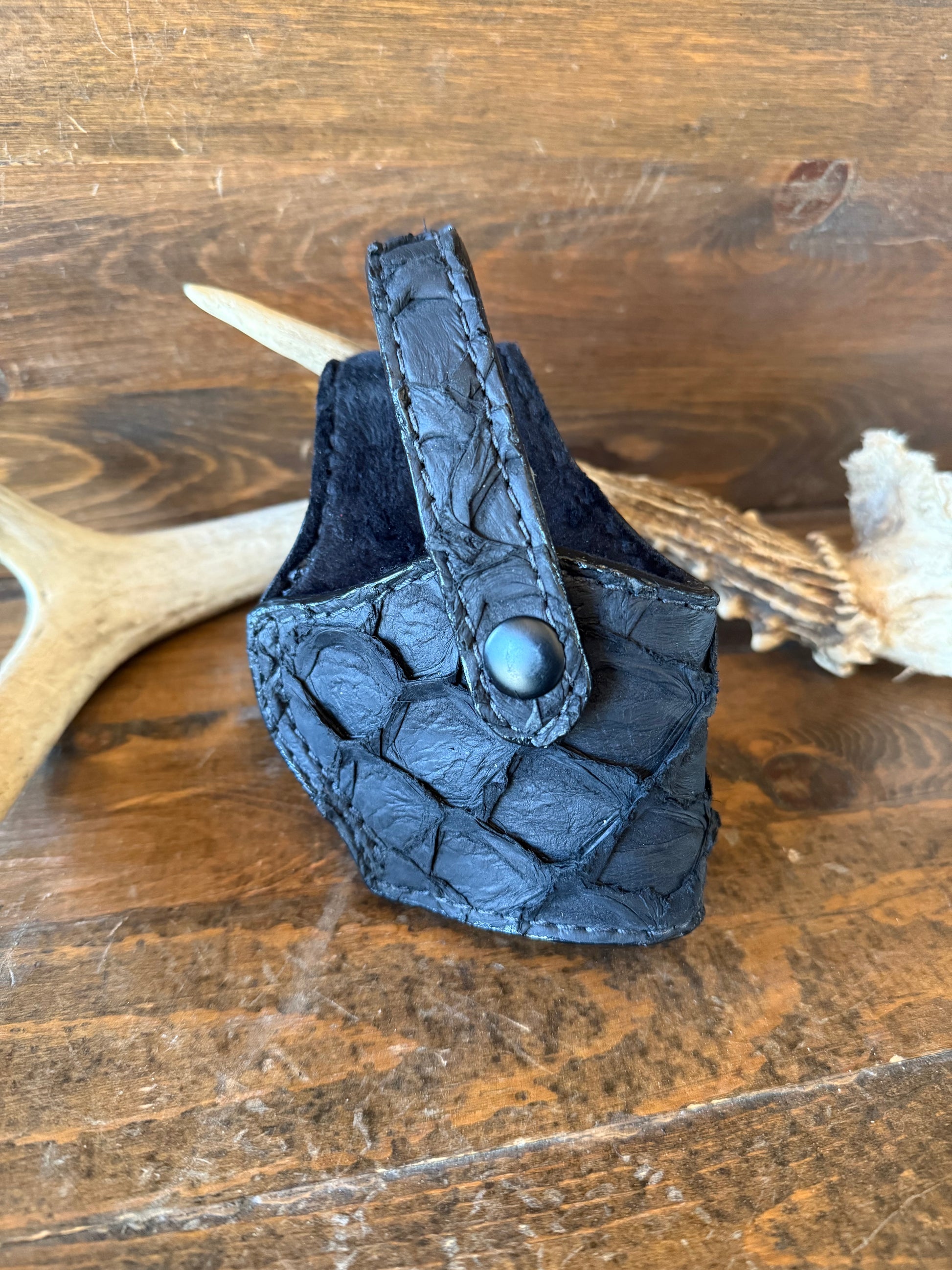 # H-269 Black matte Pirarucu fish skin compact holsters. Black color snap. Fits most of 1911 models. Soft velvet interior to prevent scratching. More colors available by order.