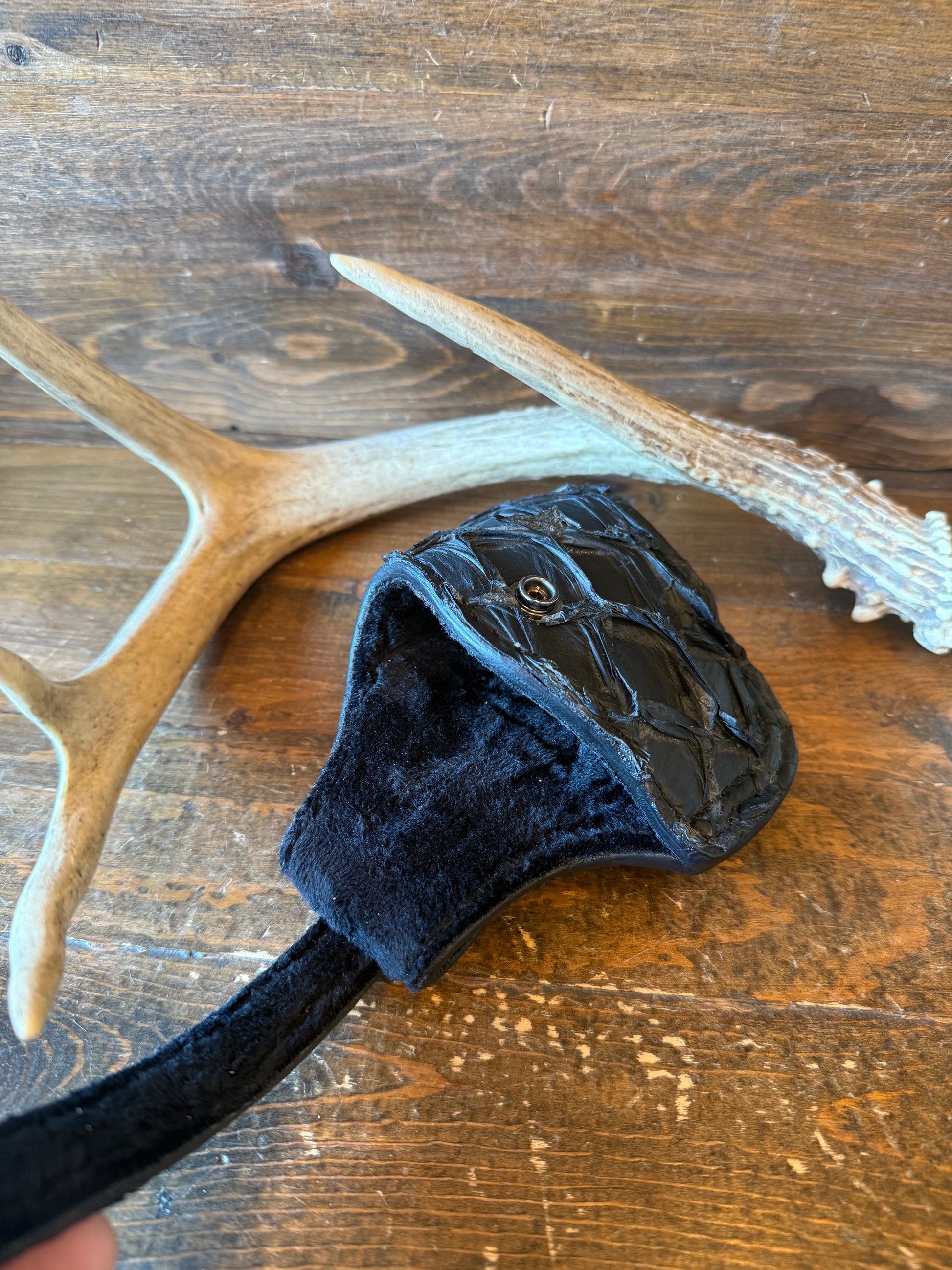 # H-363 Black matte Pirarucu fish skin compact holsters. Black color snap. Fits most of Glock models. Soft velvet interior to prevent scratching. More colors available by order.