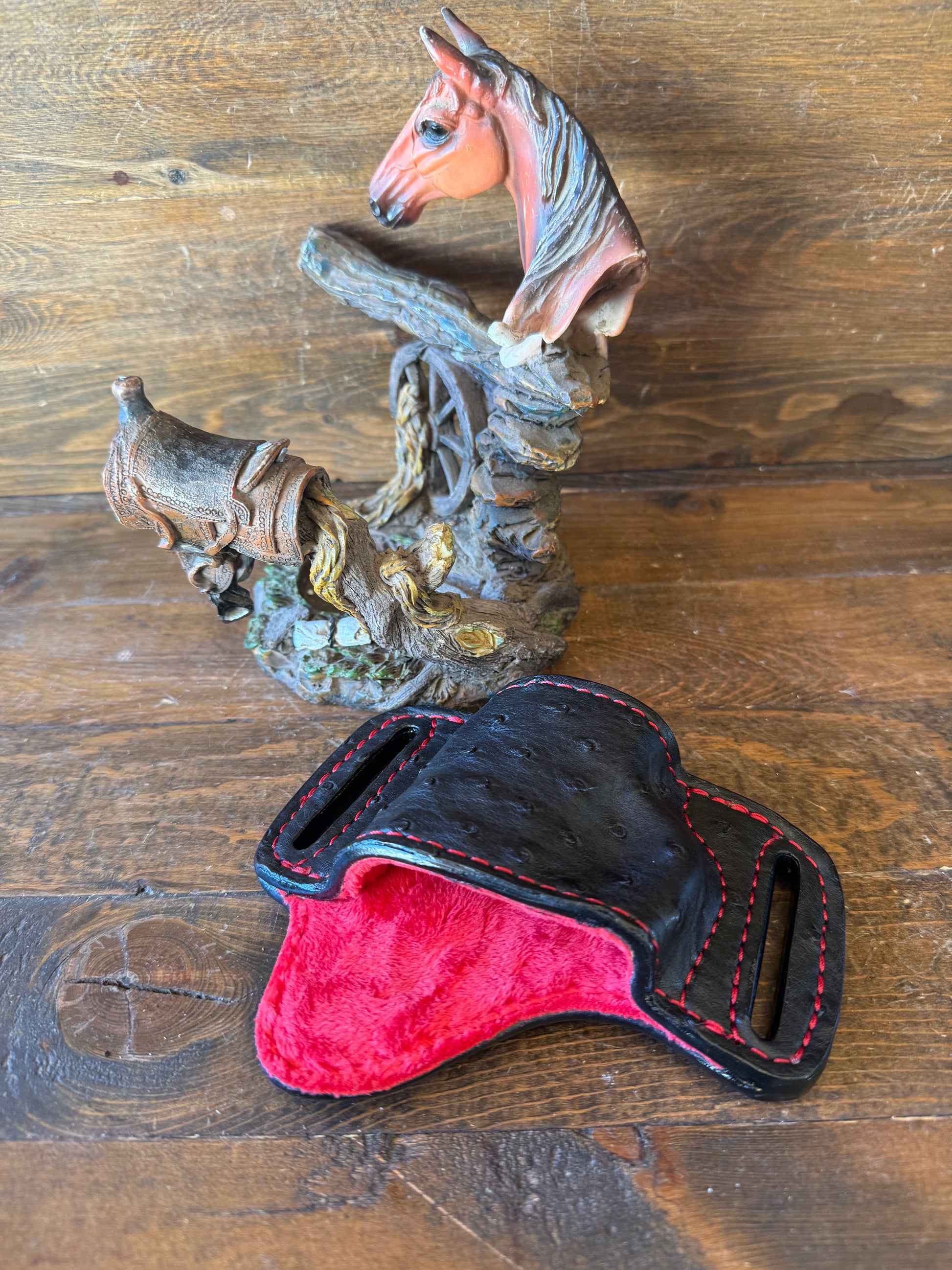 # H-325. Black/red ostrich skin bikini Owb holster. Fits most of 1911 models. Red luxury velvet interior to prevent scratches. More colors available by order.