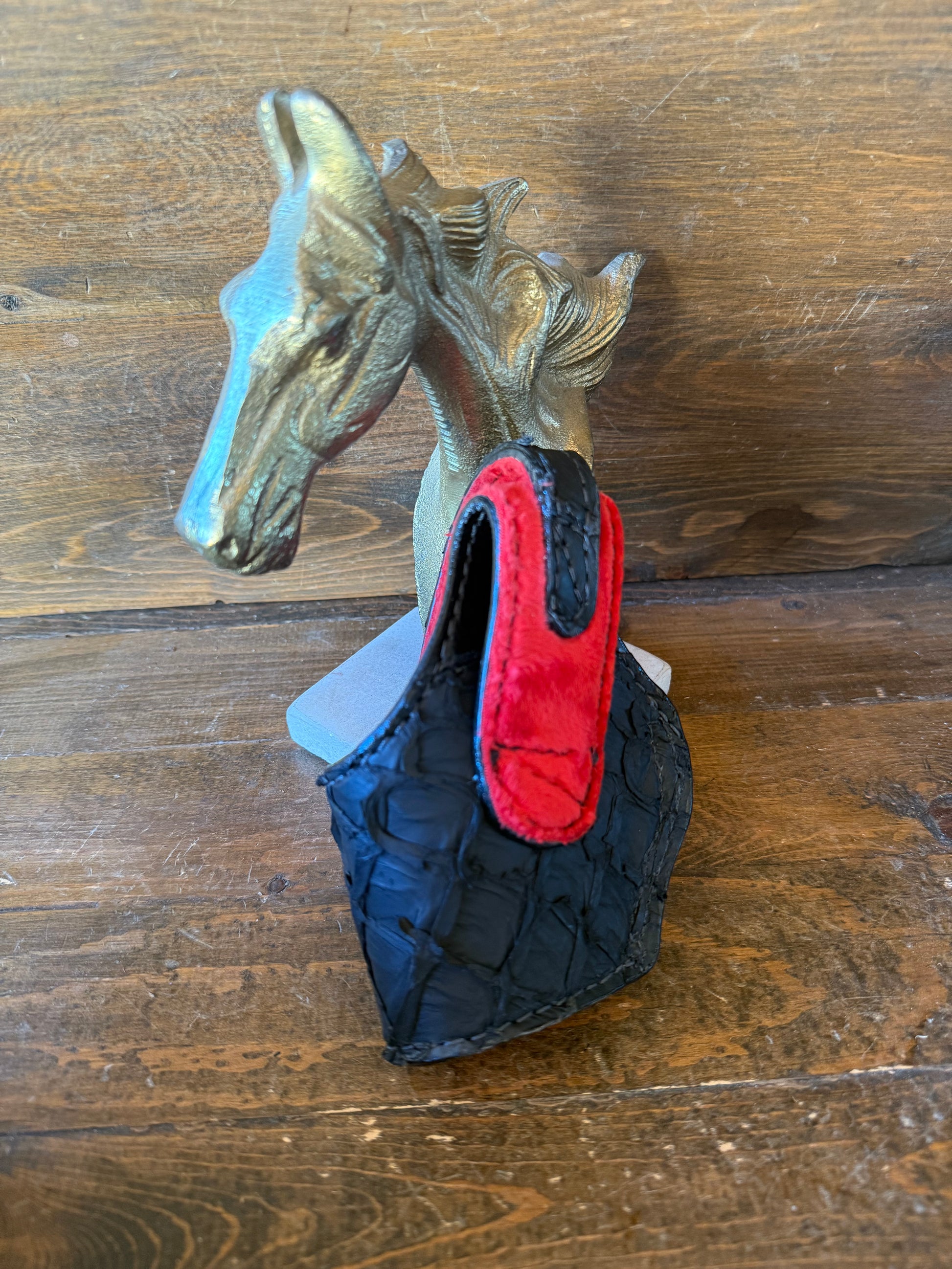 # H-269-2 Black/red matte Pirarucu fish skin compact holsters. Black color snap. Fits most of 1911 models. Soft red velvet interior to prevent scratching. More colors available by order.