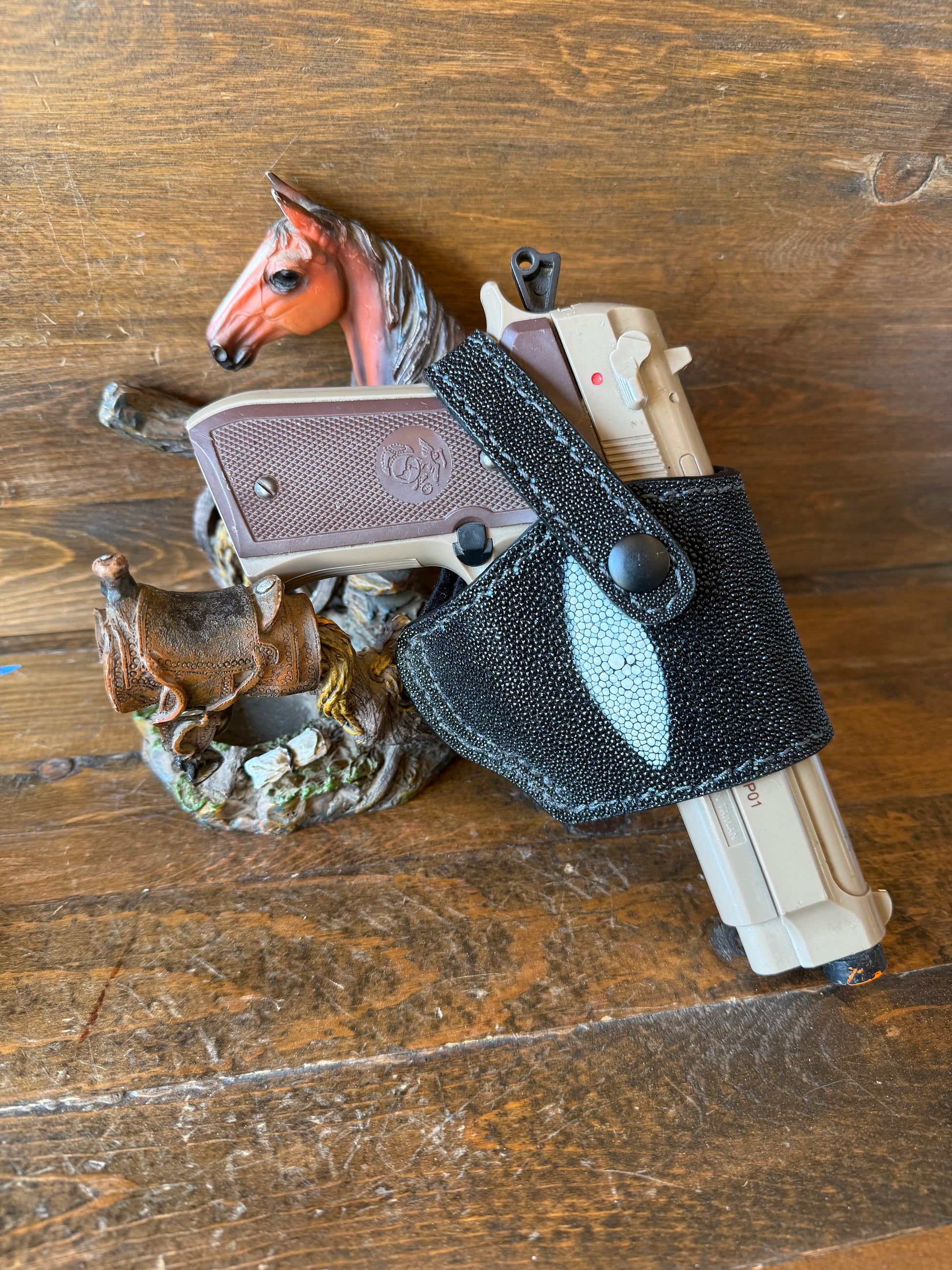 # H-297 Black Stingray skin w/diamond compact holster. For Beretta models . Soft velvet interior to prevent scratches. More colors available by order.