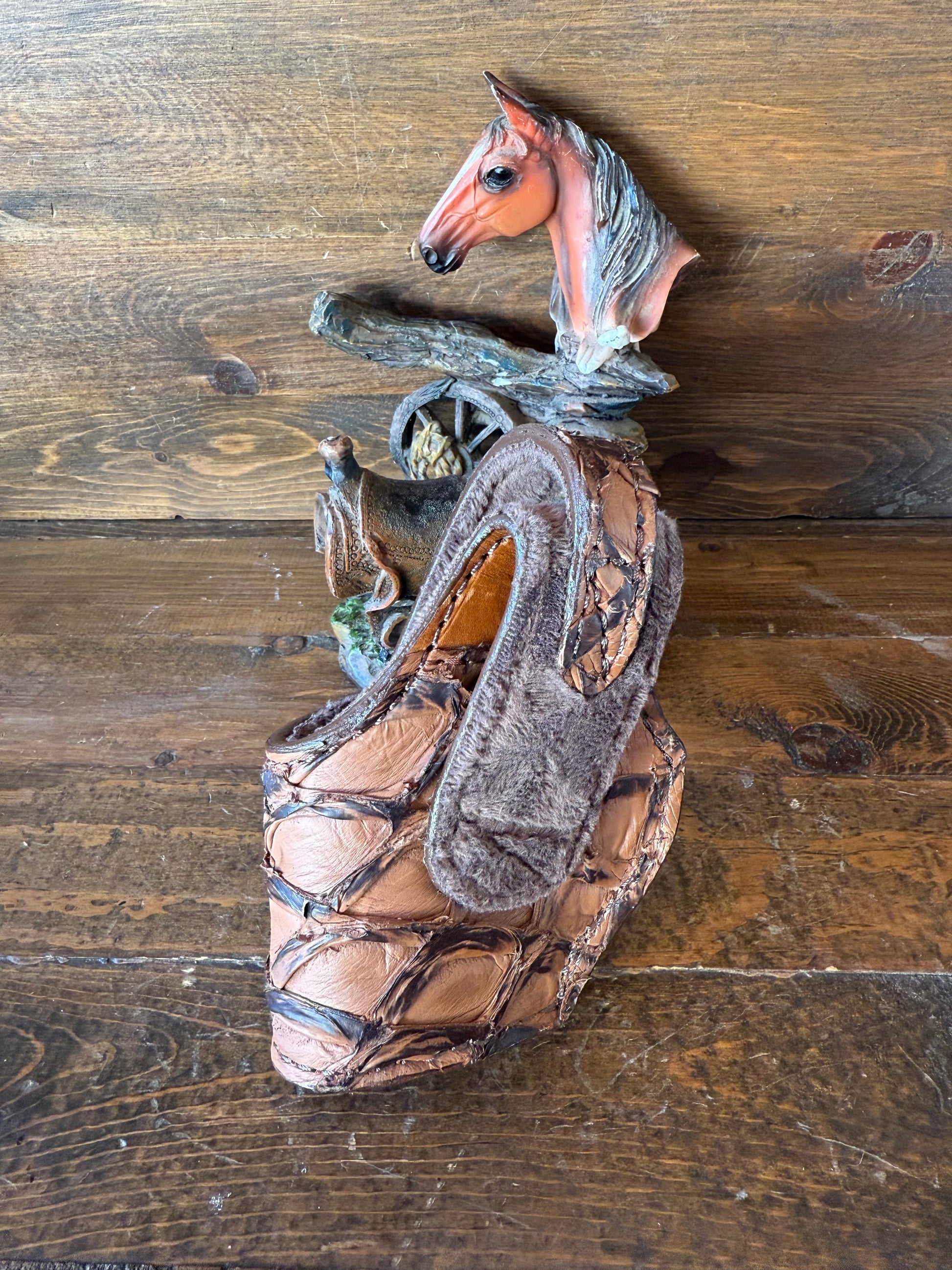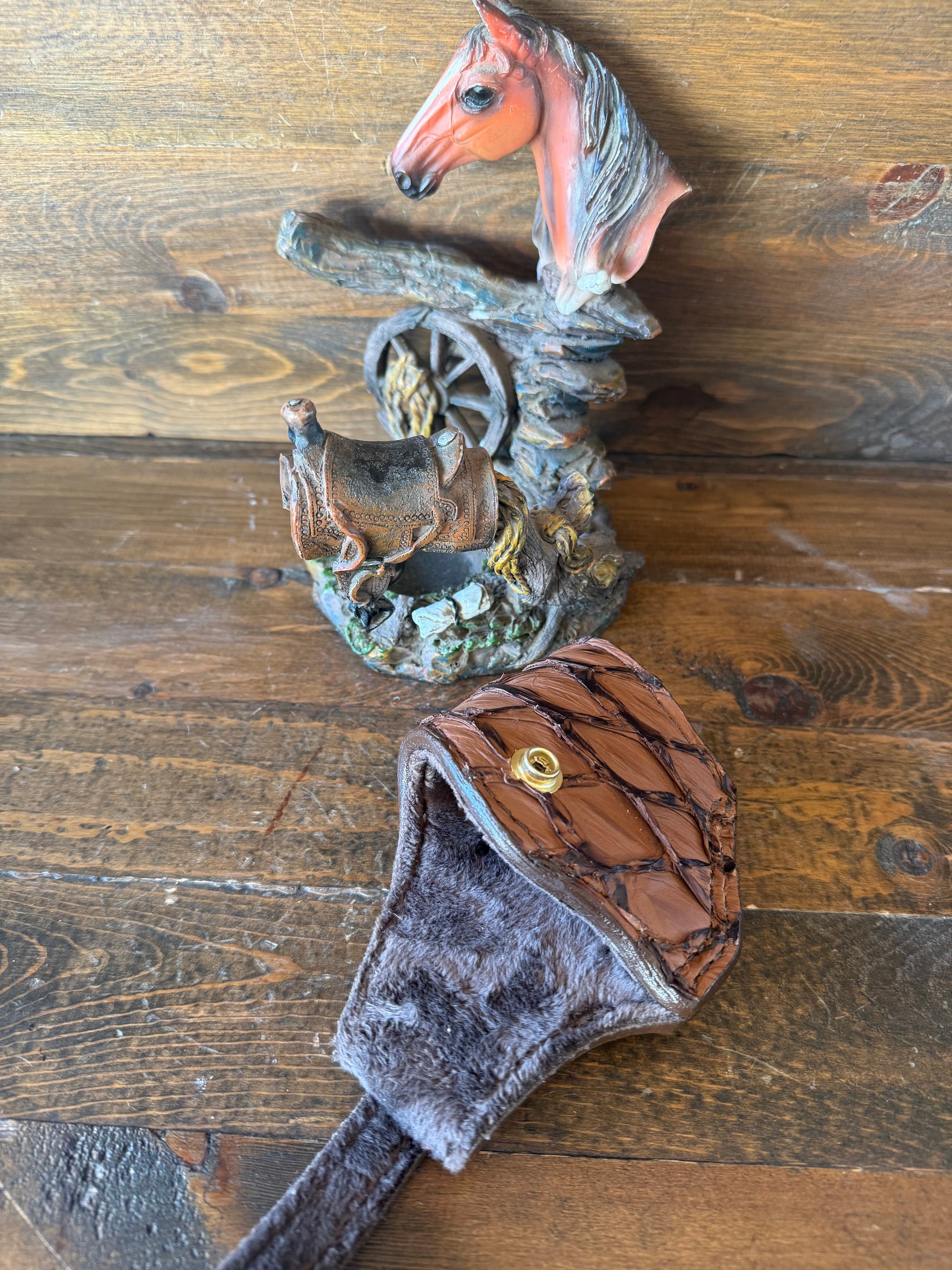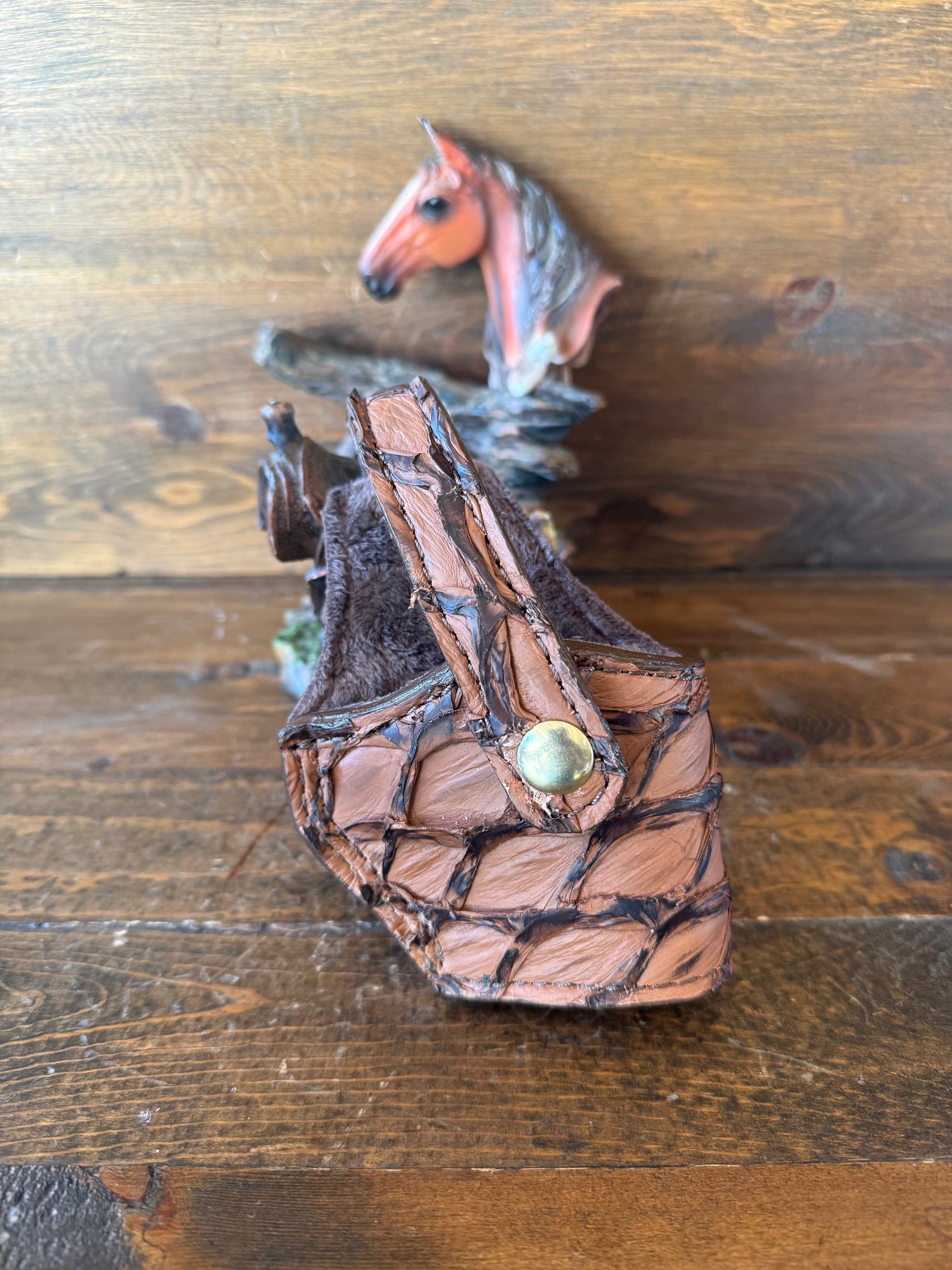 # H-212 Brown Pirarucu fish skin compact holsters. Gold color snap. Fits most of 1911 models. Soft velvet interior to prevent scratching. More colors available by order.
