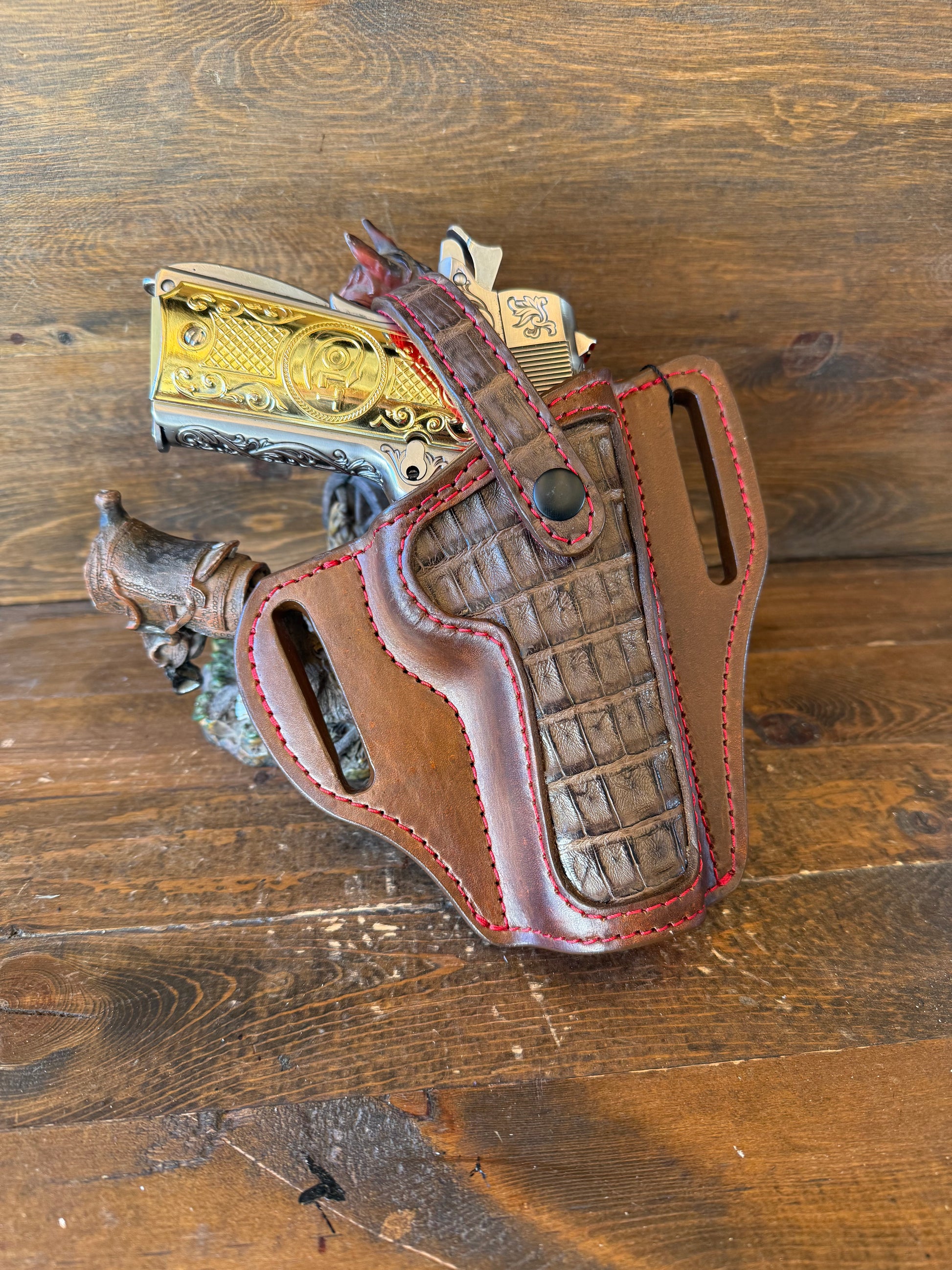 Texas - Luxury Cocodrile skin inlay full holster for 1911. W/strap and red lining.