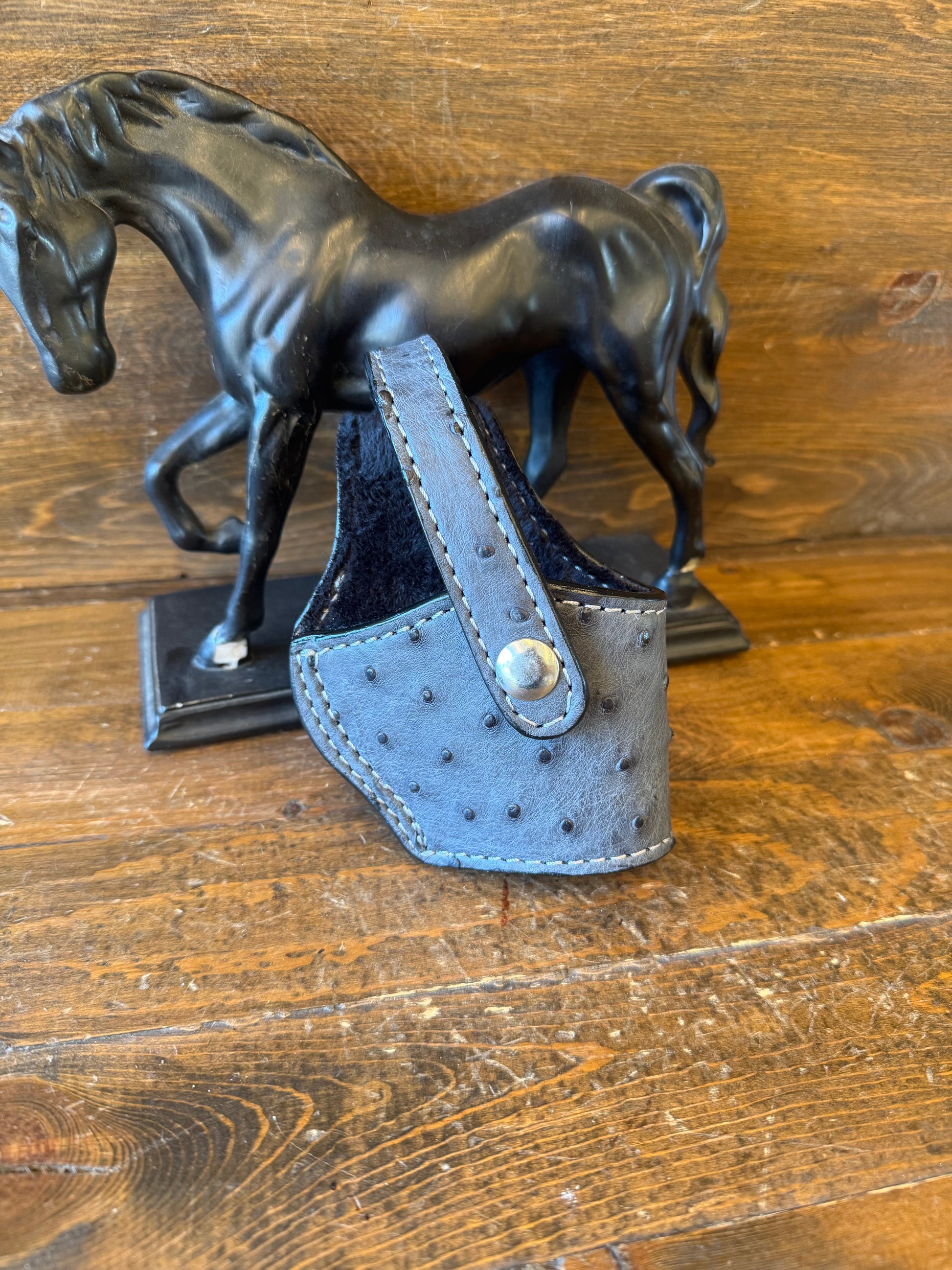 # H-329 Dark Gray Ostrich skin luxury compact holster. Chrome color snap button. Fits most of 1911 models. Soft velvet interior to prevent scratches . More colors available by order.