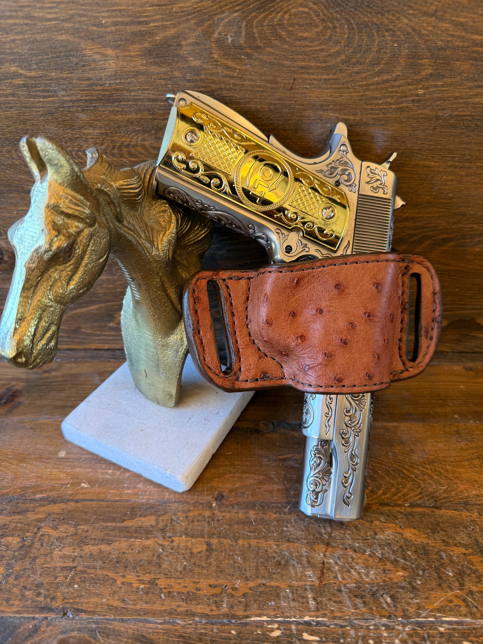 # H-346 Gerbera color ostrich skin bikini Owb holster. Fits most of 1911 models. Soft velvet interior to prevent scratches. More colors available by order.