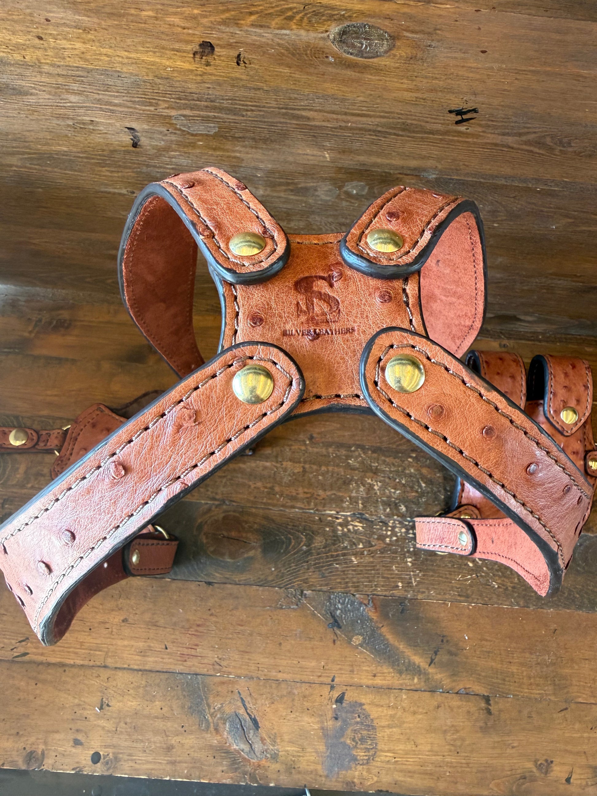 # S-105 Gerbera ostrich skin Full Quails luxury shoulder strap holsters. Fits most of 1911 models. And 2 Magazines. Luxury velvet interior to prevent scratches. Back is straps lined with suede. Fully adjustable with Chicago screws. More colors and skins available by order.