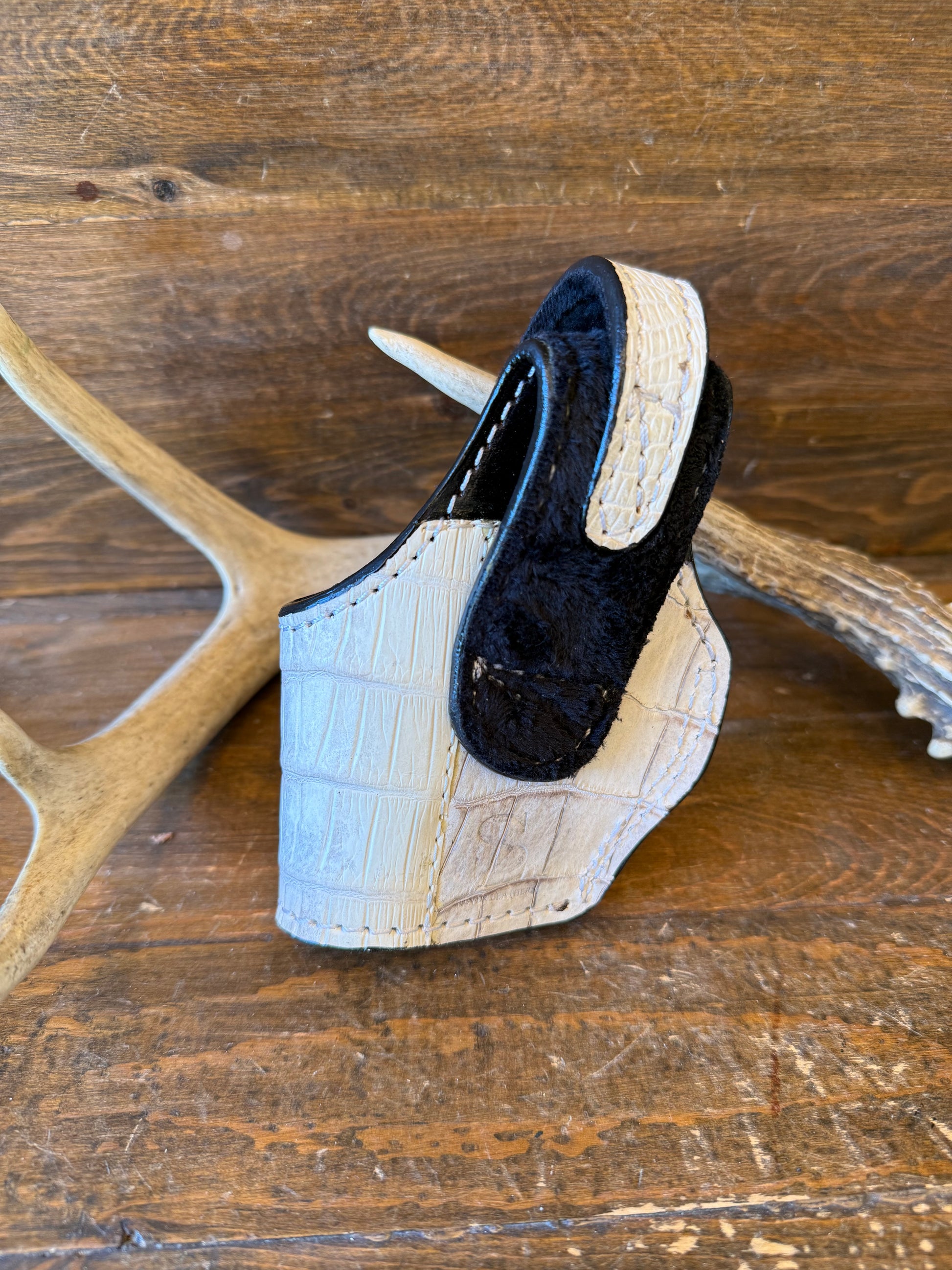 # H-355 Himalayan color alligator/crocodile tail skin compact holster. Fits most of 1911 models. Soft velvet interior to prevent scratches.