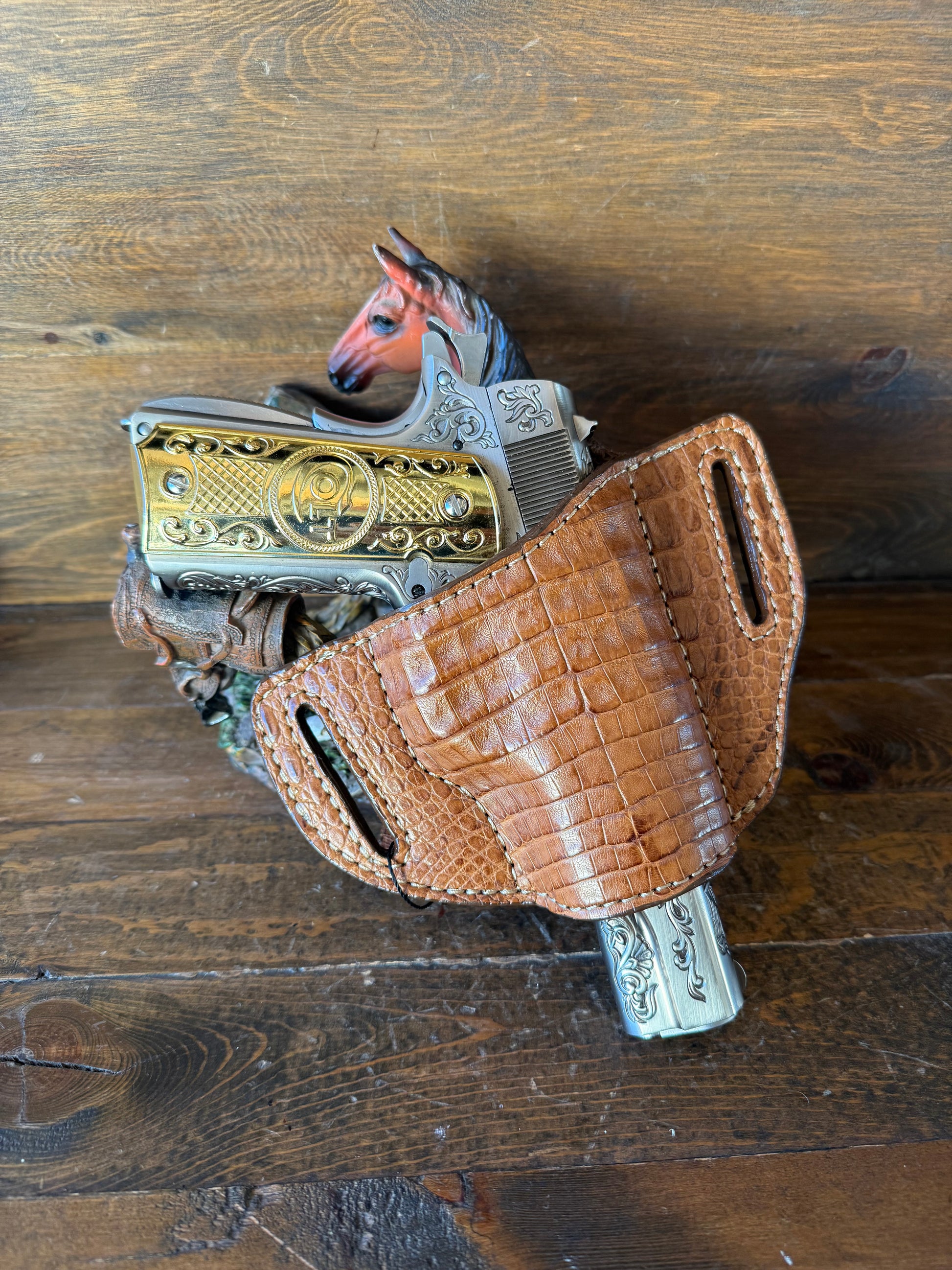 # H-279 . Honey color Full crocodile/caiman belly skin holster. Fits most of 1911 models. Luxury Soft velvet interior to prevent scratches. More colors available.