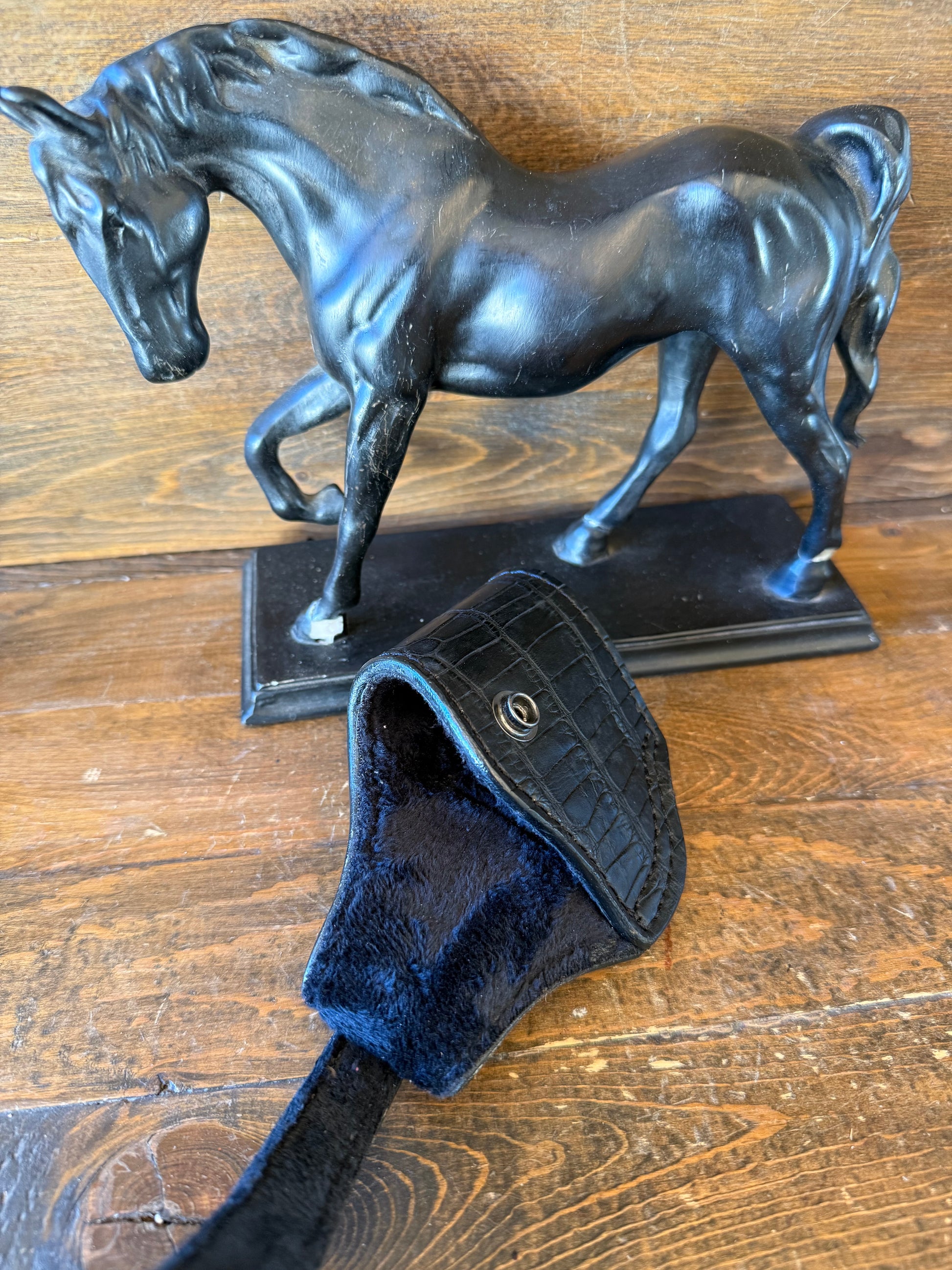 # H -229. Matte black alligator/crocodile belly skin compact holster. Fits most of 1911 models. Soft velvet interior to prevent scratches.